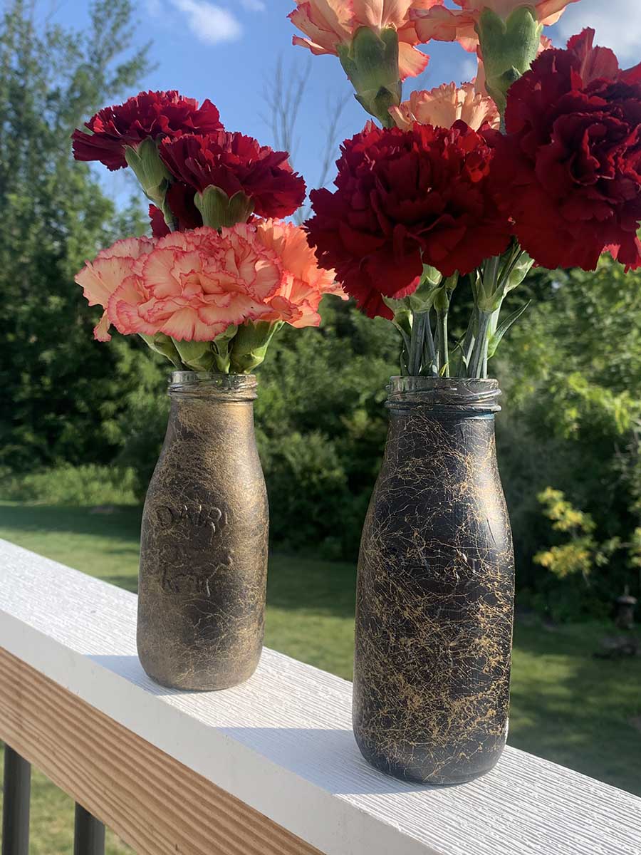 This project is great for centerpieces or fresh flowers around the house. Choose paint colors that match your other décor and some cheery flowers for a pop of color in any room!