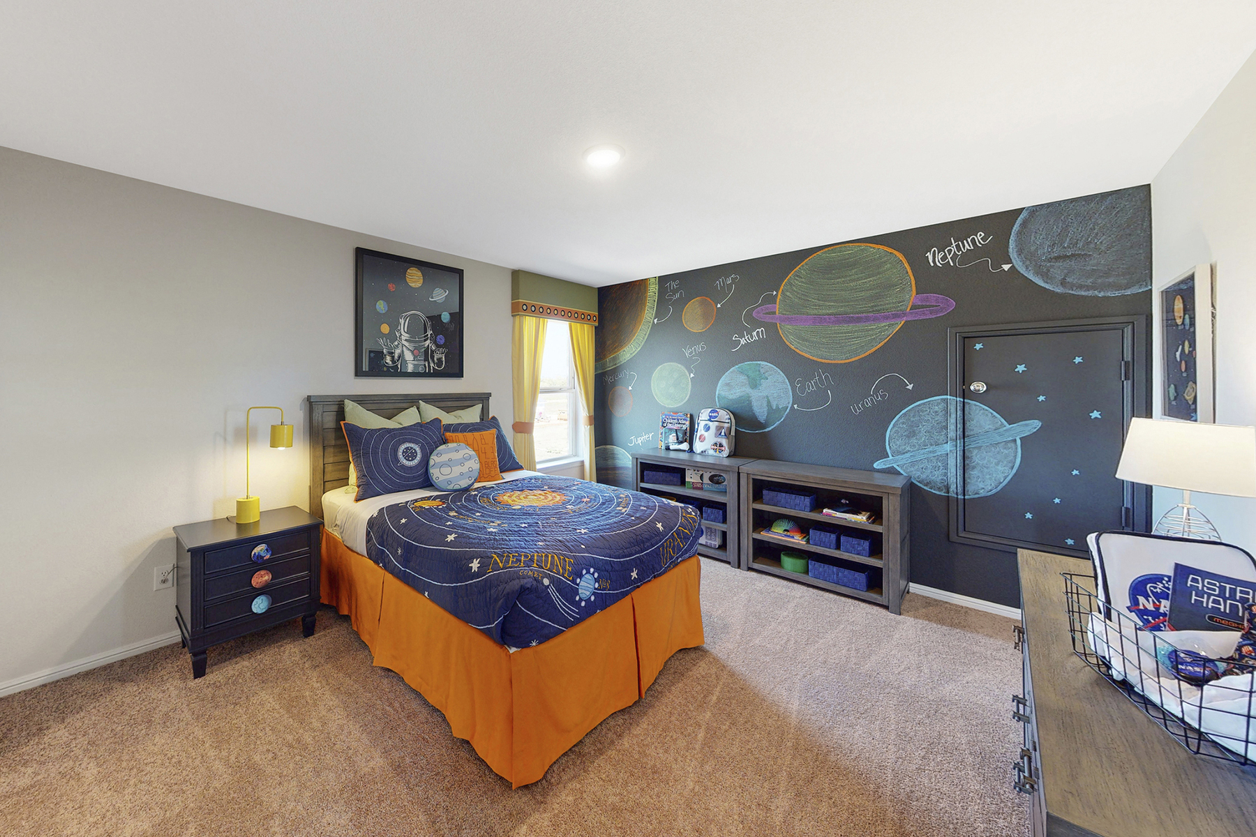 A child’s bedroom can be brought to life by painting an accent wall their favorite color. And, because preferences change over the years, it’s an easy design update later on as well.
