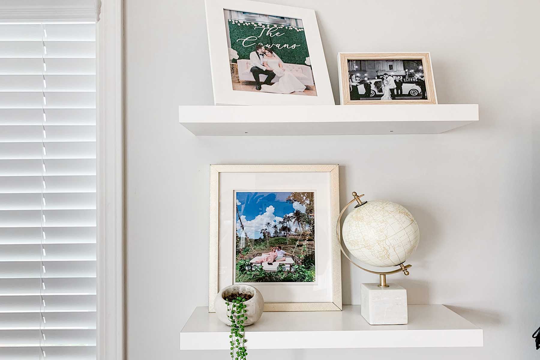 We incorporated our favorite books, pictures of memorable times, and items like a globe and figurines that resemble meaningful aspects of our lives. A few other things to keep in mind are…