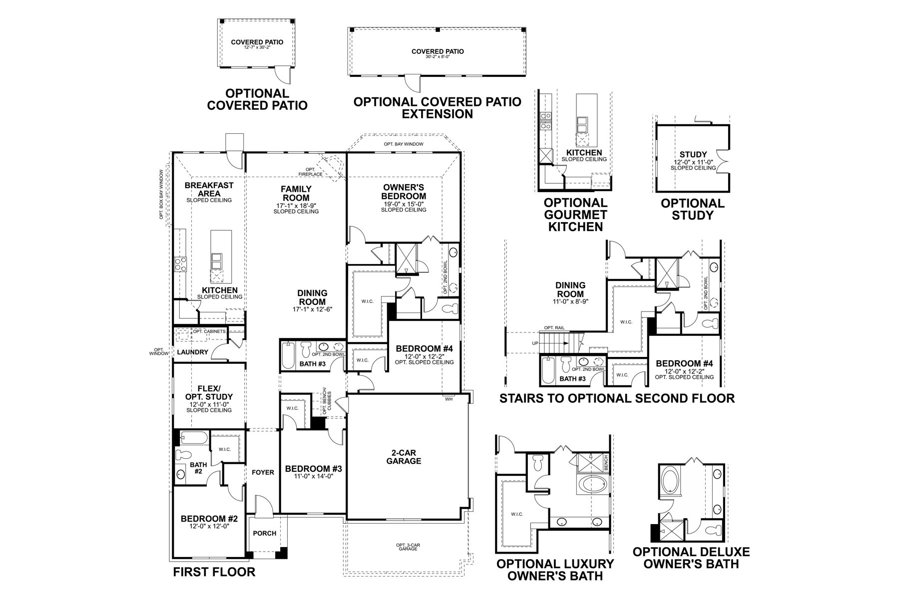 Access your luxurious owner’s suite through a private entry off the family room. The large 19’x15’ bedroom features sloped ceilings, an extended bay window, and a private bath retreat with a walk-in closet, double vanities, an oversized walk-in shower, and a separate garden tub.