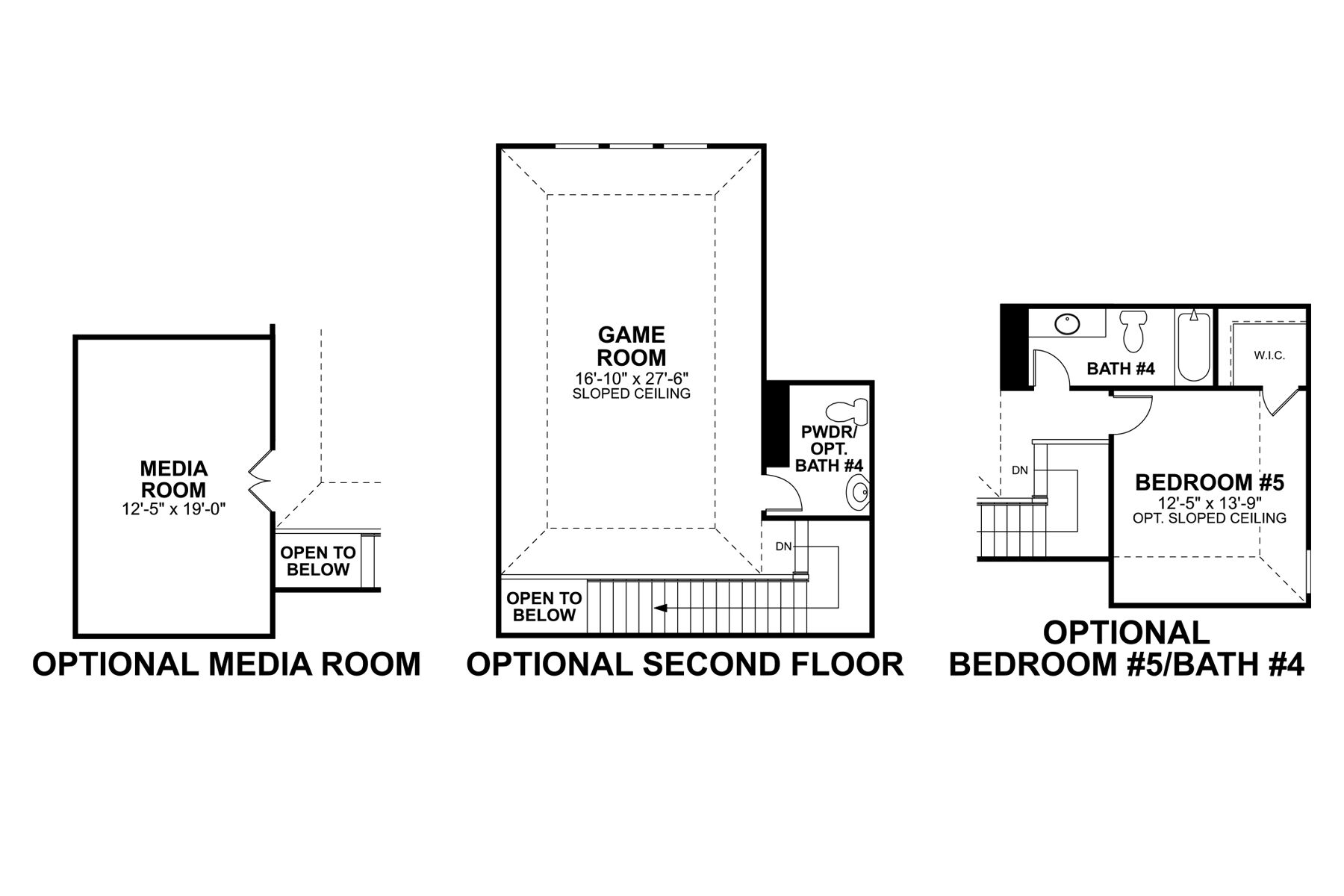 Take the staircase to the second floor where a large game room is the perfect place to set up a pool table. A media room is in the left corner of the home and an additional bedroom with a full bathroom is in the right corner.